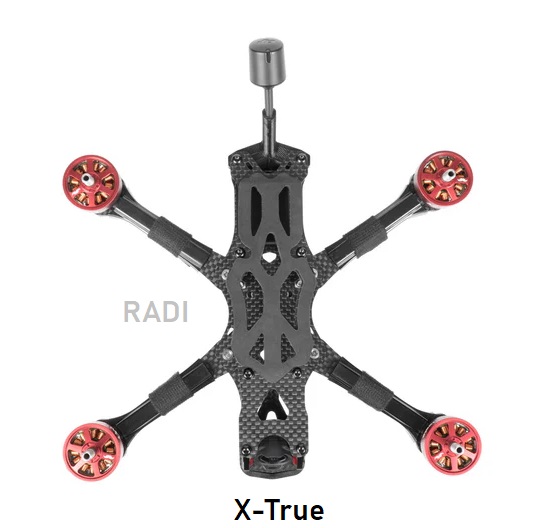 - X-frame (Xtrue berbentuk huruf X) sering dipakai untuk drone Race, Freestyle karena bentuknya X titik pusat ada di tengah memungkinkan drone mudah bergerak dengan lincah .