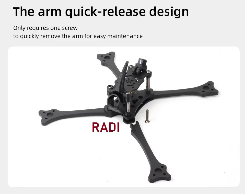 - DC (DeatCat) memiliki bentuk susunan lengan yang asimetris, dengan lengan depan yang lebih jauh keluar dan ke belakang sehingga propeller tidak terlihat pada OSD atau tertangkap Video Camera, Umumnya digunakan untuk drone Cinematik, Longrange dan juga Freestyle.