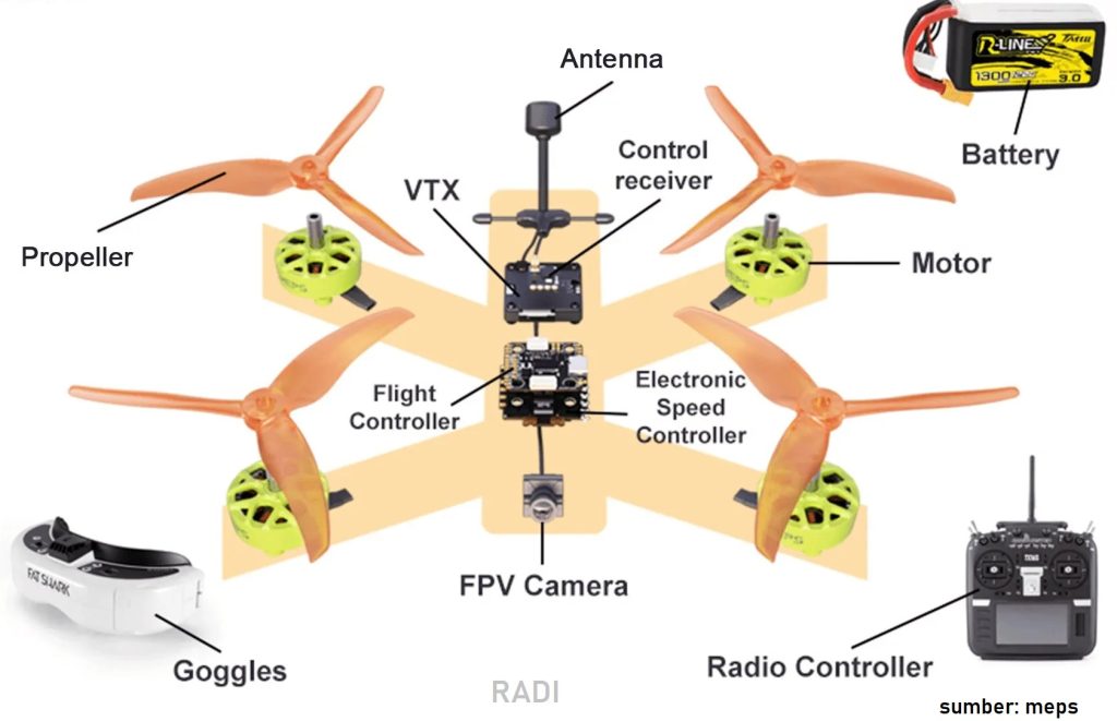 Apa saja komponen drone yang diperlukan untuk merakit drone? perhatikan gambar dibawah ini:
