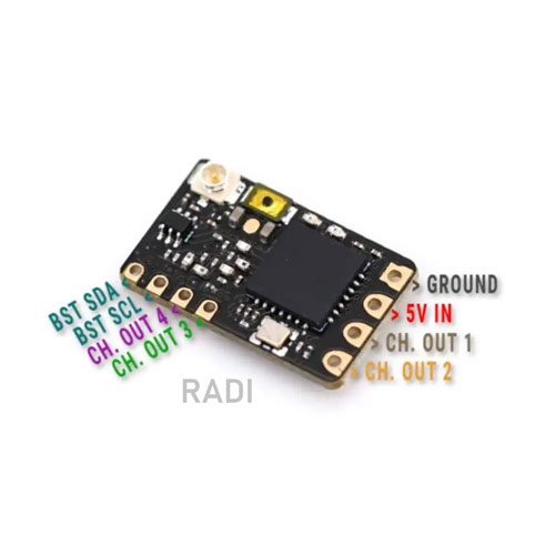 Ini adalah komponen yang bertugas meneruskan perintah dari Remote Control (TX) dan di teruskan ke FC, beberapa jenis Receiver yang umum digunakan berbasis Protocol SBUS, IBUS dan CSFR (Crosfire), beberapa tahun terakhir umumnya sudah menggunakan protocol Crossfire seperti Nano TBS (Team BlackSheep) atau jenis ELRS sepeti Jumper AION 2.4GH. umumnya frequensi yang digunakan Remote Control dan Reciever sebagai penerima adalah 2.4Ghz atau 915Mhz untuk Jarak Jauh, rumusnya adalah semakin rendah frequensi semakin jauh jangkuan (Lamda Frequensi)